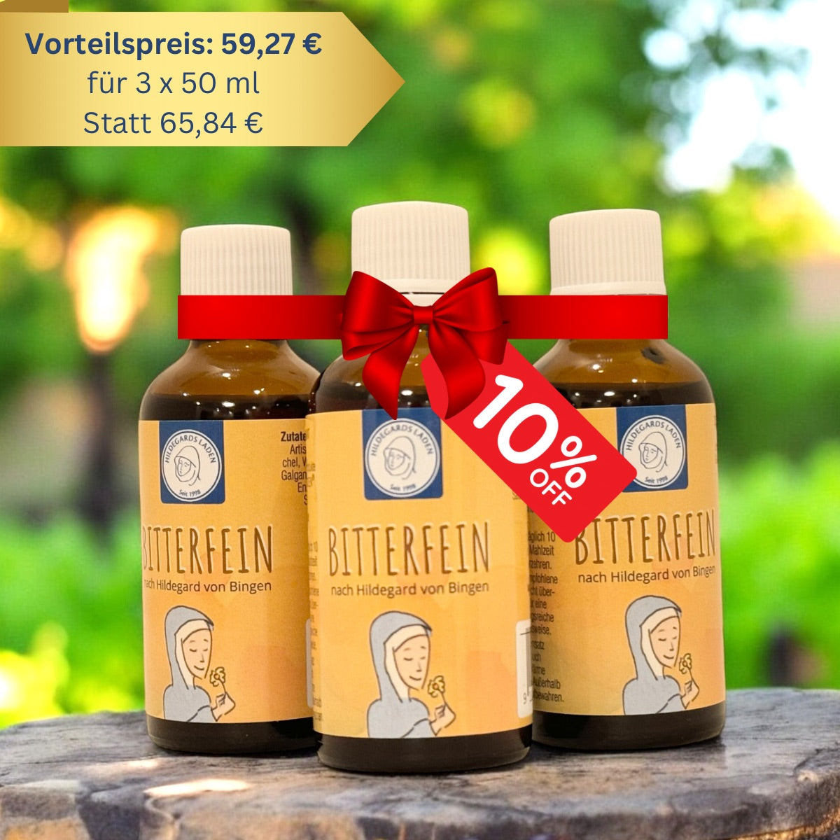 Vorteilspreis von 10 % beim Kauf von 3 Flaschen Bitterfein zu 50 ml