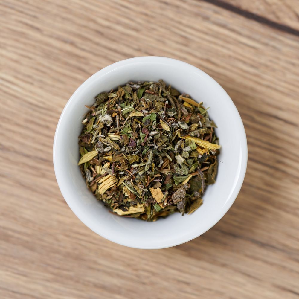 Fenchel, Salbeiblätter, Krauseminze, Brennnesselblätter, Quendelkraut, Süßholzwurzel.