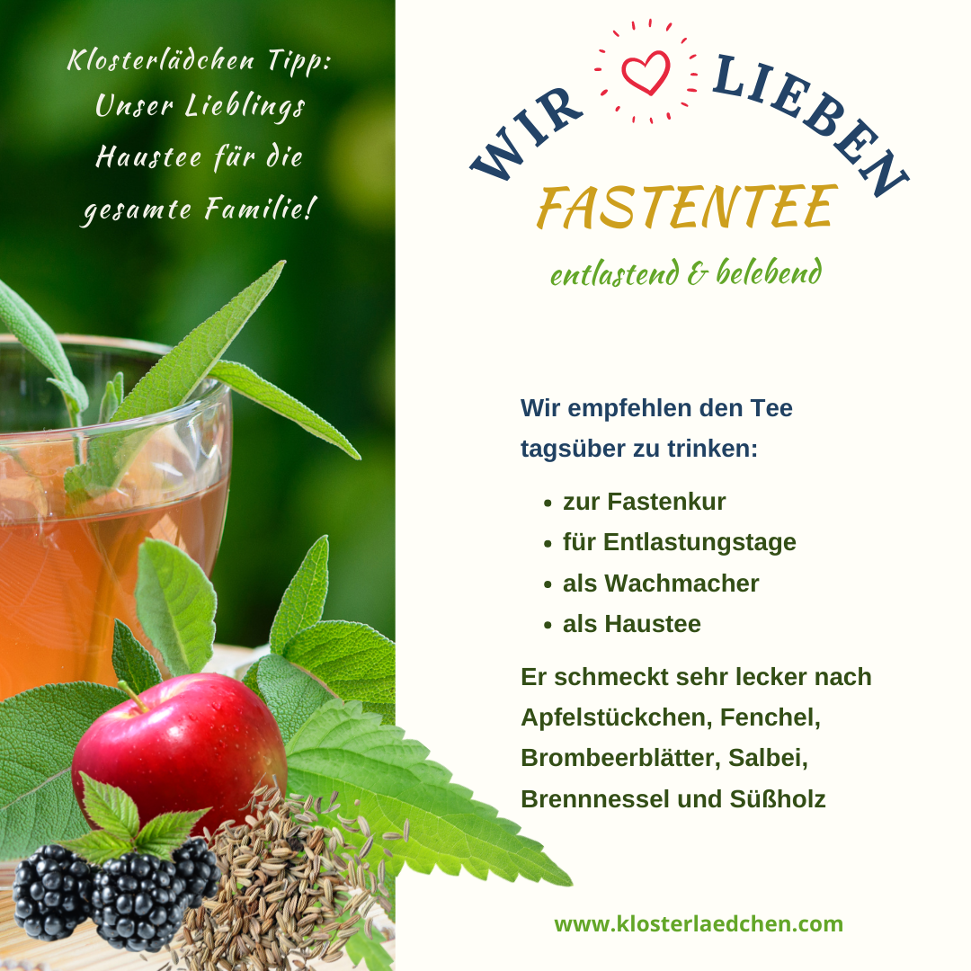 Die Kräuterteemischung eignet sich ideal als Teegetränk während der Fastenzeit. Der Fastentee bestehend aus Fenchel, Salbei, Süßholzwurzel und weiteren typischen Hildegard-Kräutern, hinterlässt einen angenehmen Geschmack und ist aber auch das gesamte Jahr über zu genießen.