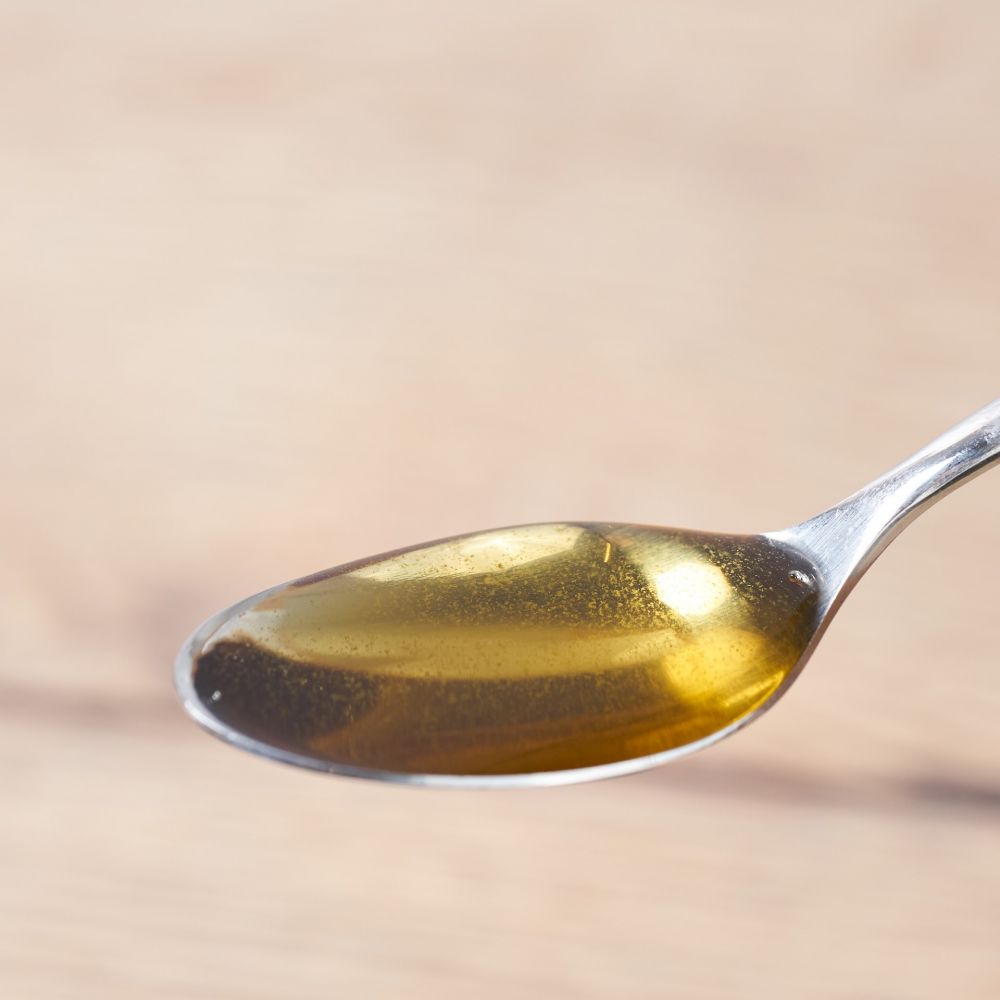 Verzehrsempfehlung: 3x täglich 1 Teelöffel (1 TL = ca. 50 Tropfen) mit etwas Wasser oder pur verzehren.