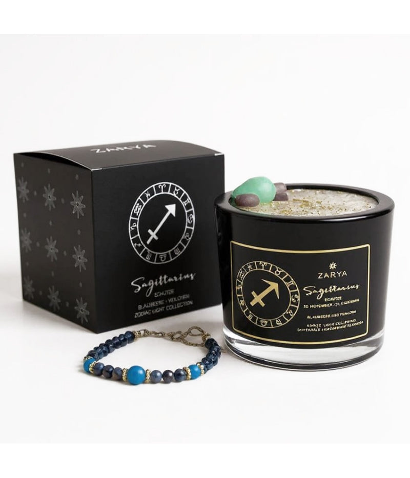 Schütze Sternzeichen Set – Zodiac Light (Kerze + Edelsteinarmband)