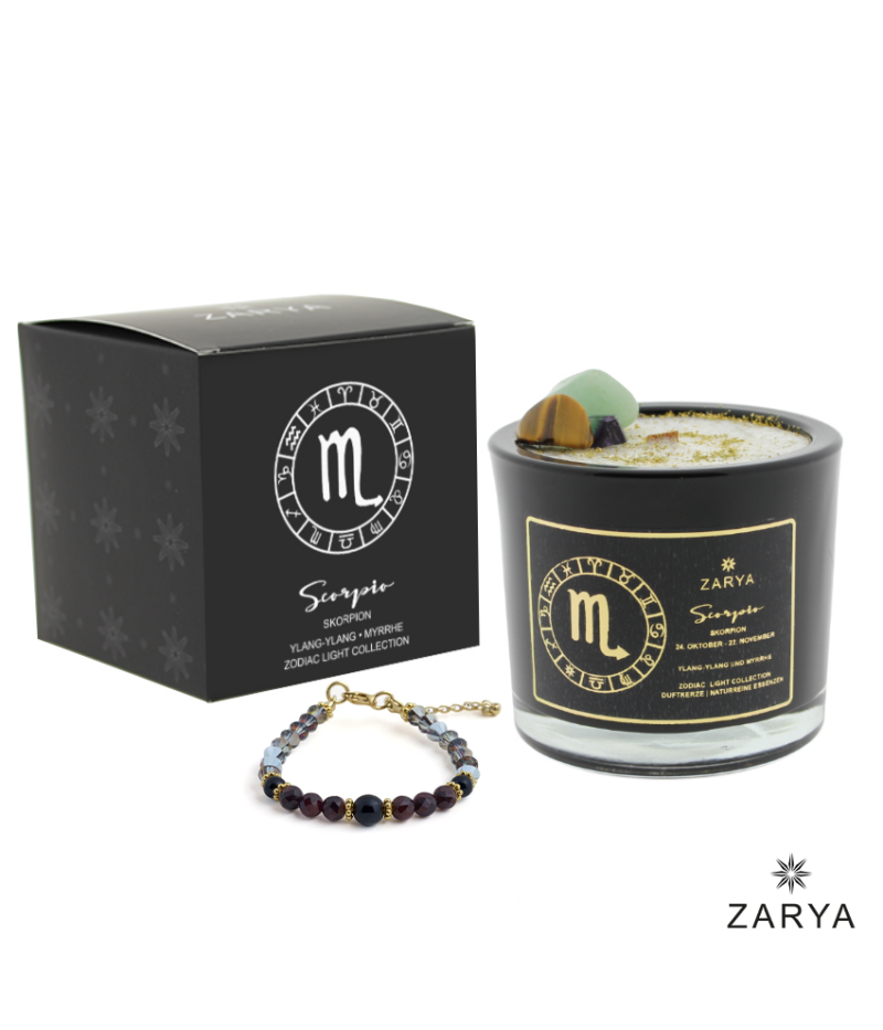 Skorpion Sternzeichen Set – Zodiac Light (Kerze + Edelsteinarmband)