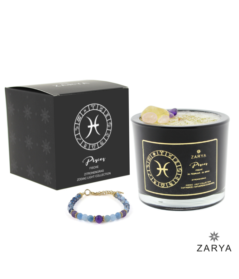 Fische Sternzeichen Set – Zodiac Light (Kerze + Edelsteinarmband)