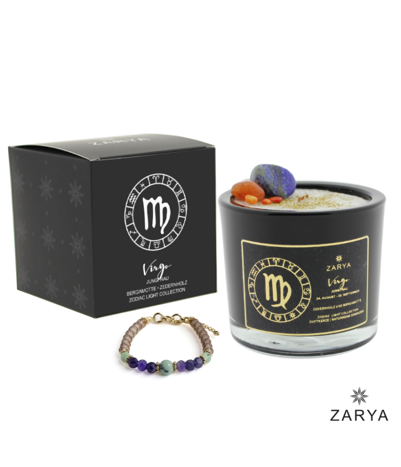 Jungfrau Sternzeichen Set – Zodiac Light (Kerze + Edelsteinarmband)