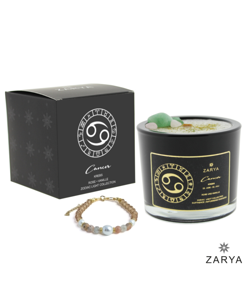 Krebs Sternzeichen Set – Zodiac Light (Kerze + Edelsteinarmband)