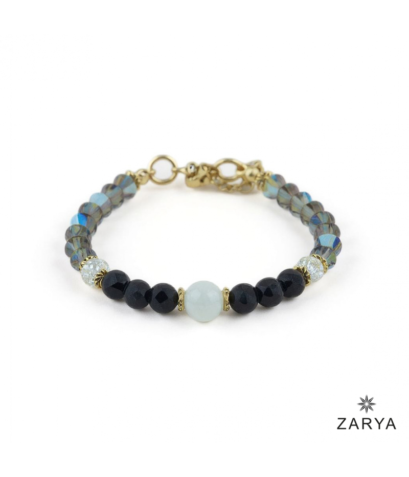 Edelsteinperlen: Bergkristall (8mm/6mm), Onyx fac. (6mm)