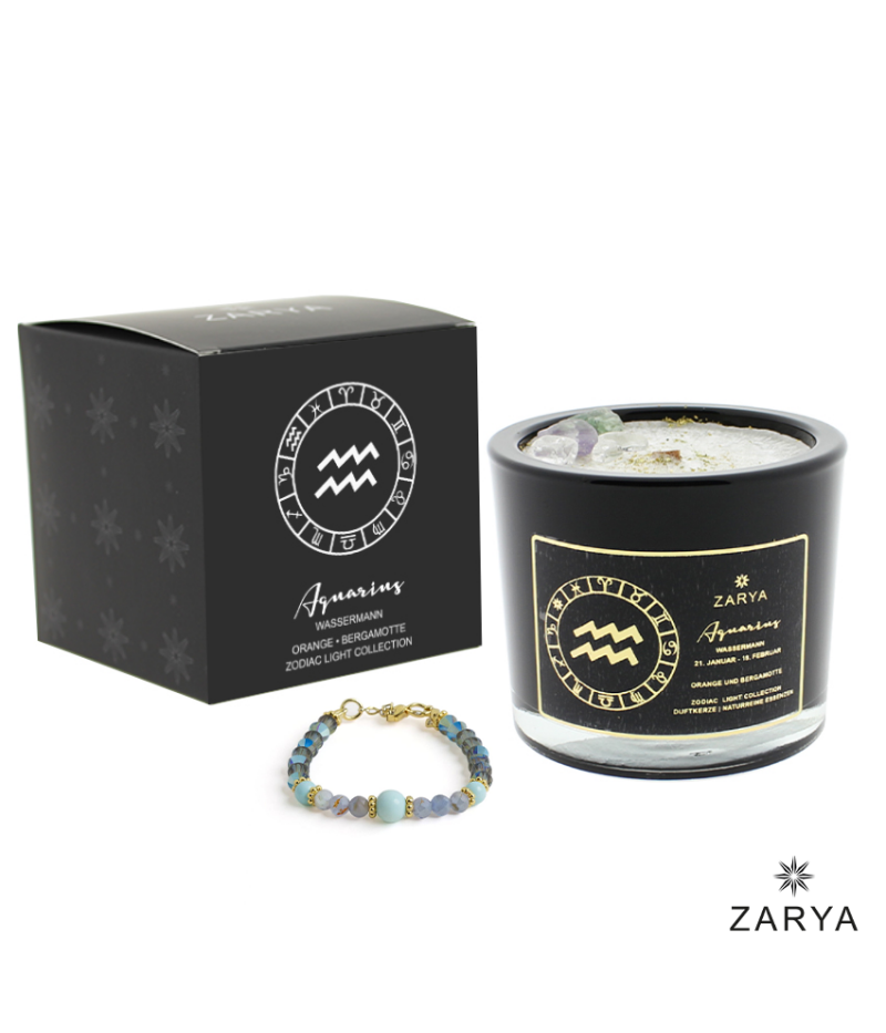 Wassermann Sternzeichen Set – Zodiac Light (Kerze + Edelsteinarmband)