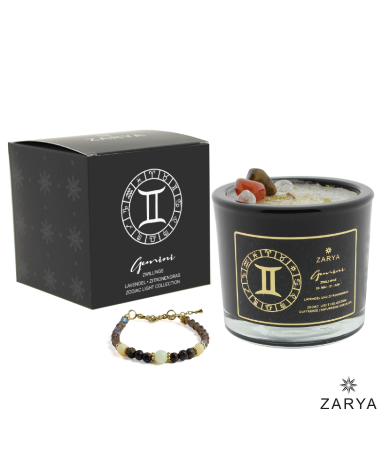 Zwillinge Sternzeichen Set – Zodiac Light (Kerze + Edelsteinarmband)