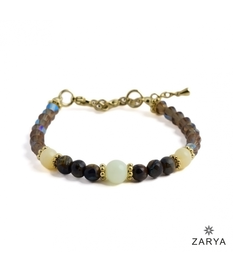 Edelsteinperlen: Calcit (8mm/6mm), Tigerauge fac. (6mm)