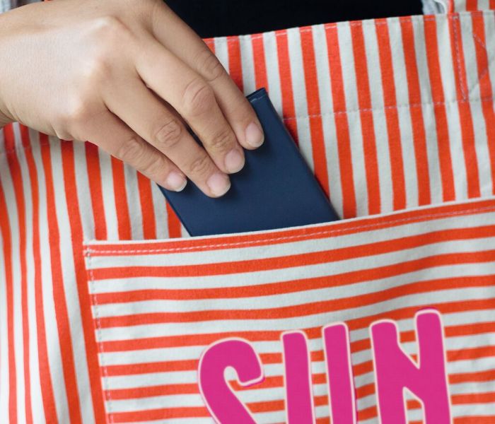 XL Shopper „Sun“ – Für strahlende Tage und sonnige Pläne ☀️ Mit seinem frischen Orange-Weiß-Streifenlook und dem sommerlichen „Sun“-Print bringt dieser XL-Shopper echtes Urlaubsgefühl in Deinen Alltag. Ob für den Strand, den Wochenmarkt oder spontane Ausflüge – der großzügige Stauraum, der breite Standboden und das praktische Außenfach machen ihn zum perfekten Begleiter für unterwegs.