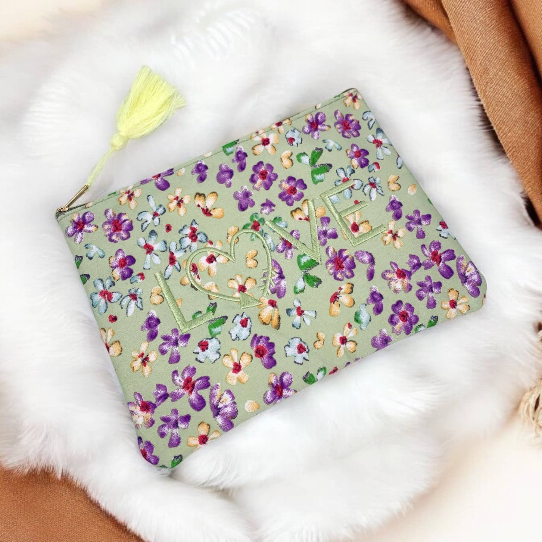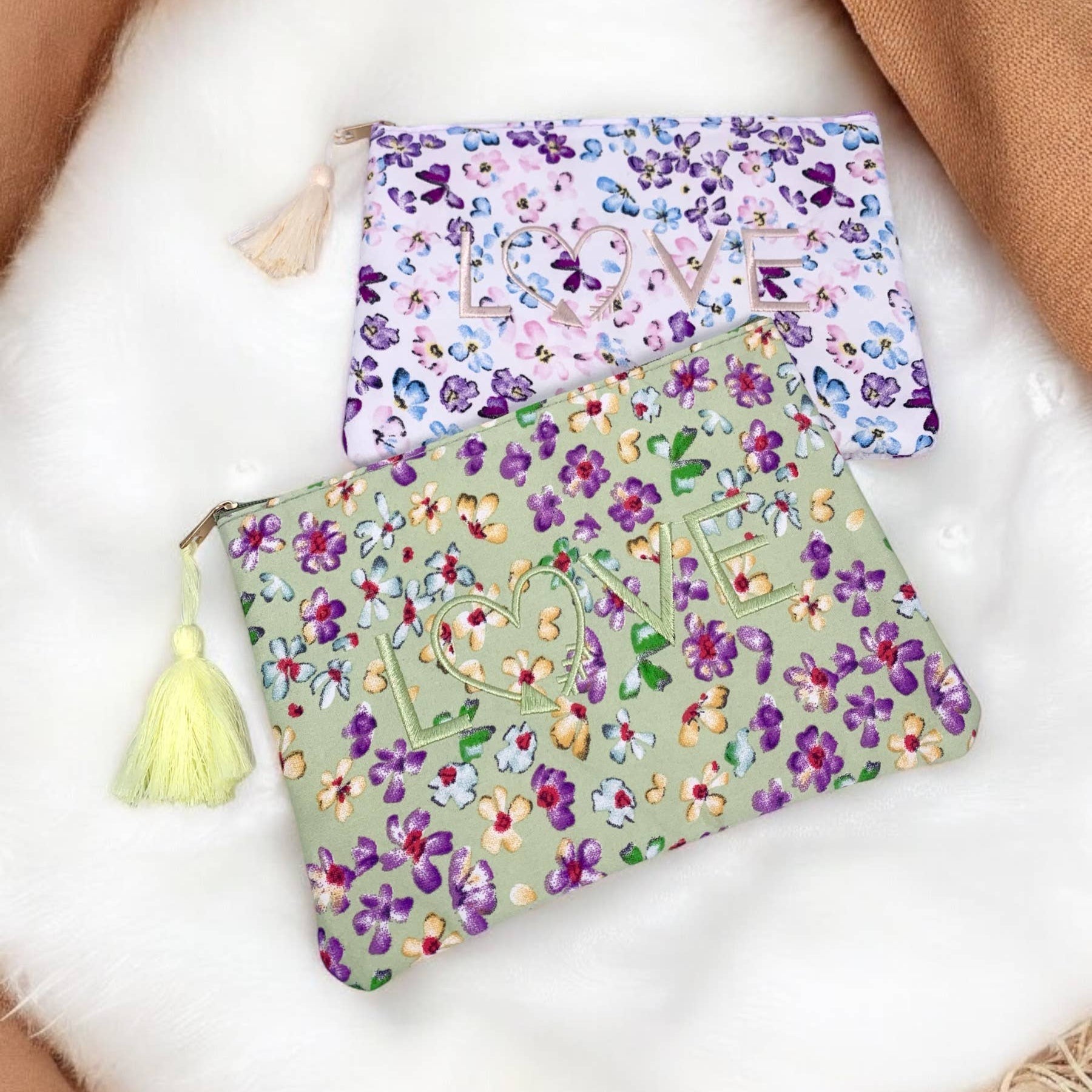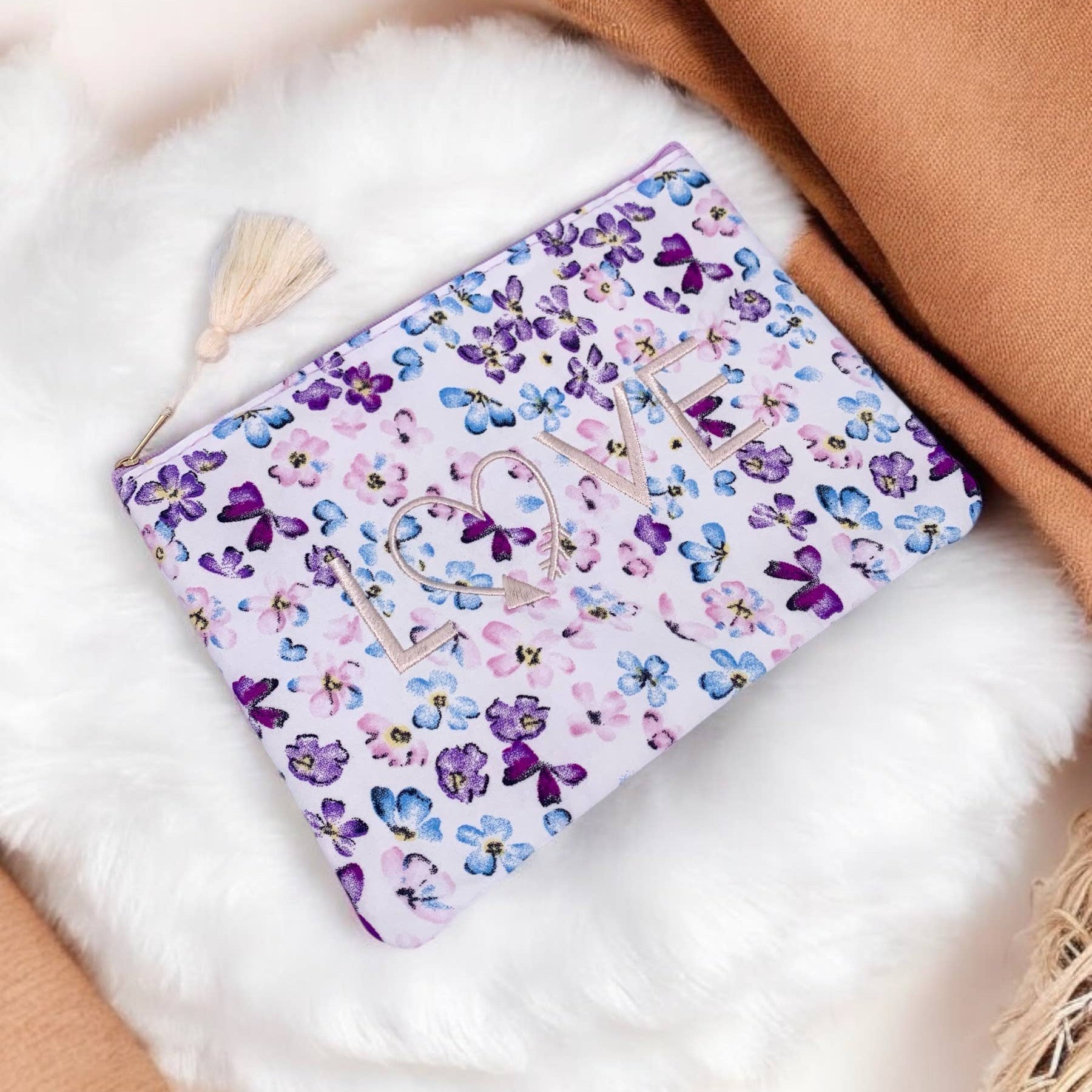- Design: Mit ReiĂverschluss und liebevollen Akzenten (z.âŻB. Tassel oder Stickerei)