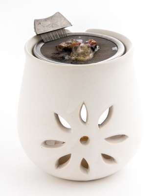 Dieses Räucherstövchen, mit einer schönen eingearbeiteten Blume eignet sich ideal zum sanften Räuchern von Harzen und Kräutern über dem Teelicht