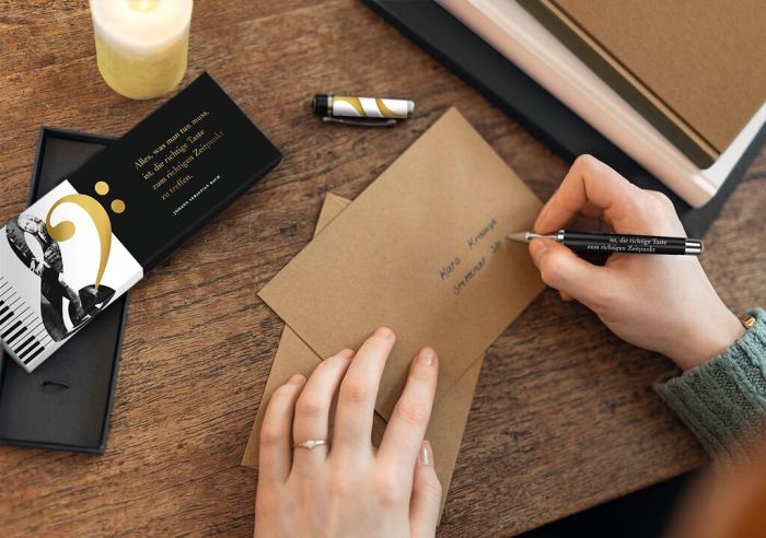 In edler Geschenkverpackung – bereit für große Gedanken und feine Noten. 🎶