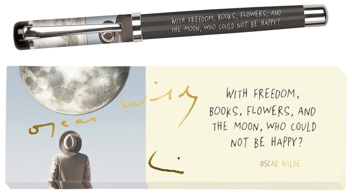 Tintenroller „Oscar Wilde“ – Schreibkultur mit Seele und Stil 🌙📚 mit der Aufschrift "With freedom, books, flowers, and the moon, who could not be happy?"