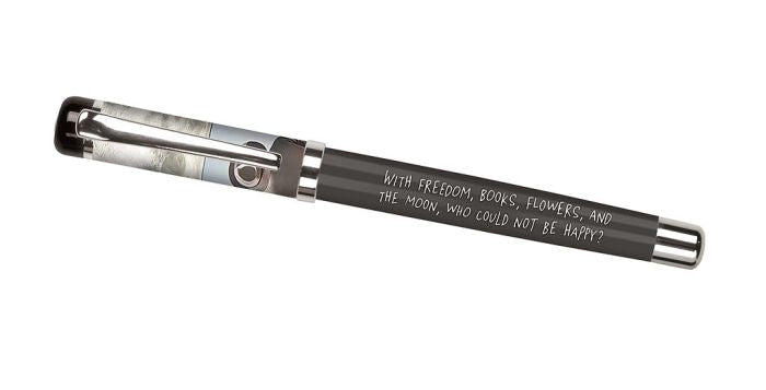 Ein Zitat, das das Herz berührt: „Mit Freiheit, Büchern, Blumen und dem Mond – wer könnte da unglücklich sein?“ Inspiriert vom Geist Oscar Wildes erinnert Dich dieser elegante Tintenroller daran, was das Leben wirklich wertvoll macht.