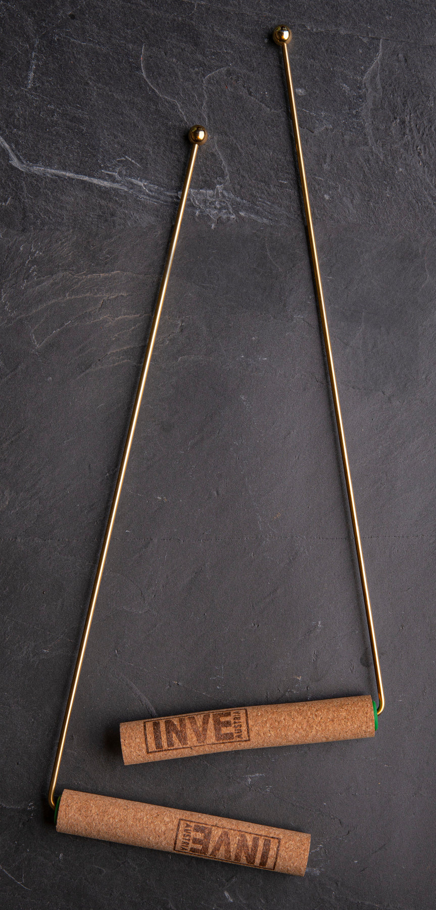 Besonders hochwertige Wünschelrute. Die beiden Griffe sind aus leichtem Kork und mit einer sehr laufgängigen Mechanik versehen. So reagiert die Wünschelrute auf leichteste Schwingungsveränderungen.